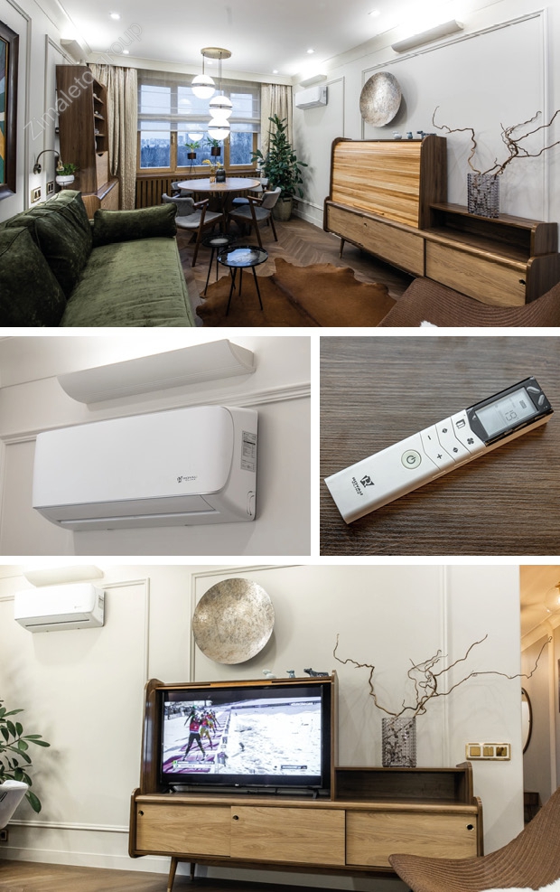 В прошлую субботу, 30 марта, на канале НТВ в эфир вышла программа «Квартирный вопрос» с новым проектом «Гостиная на пуантах». Для героев передачи, балерины в прошлом и её сына, дизайнеры проекта создали легкий, динамичный интерьер. Для создания комфортной температуры в помещении была установлена сплит-система ROYAL Clima серии PRESTIGIO
