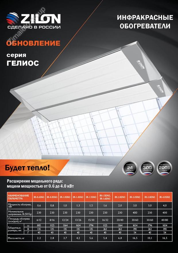 Расширение линейки инфракрасных обогревателей ZILON Гелиос